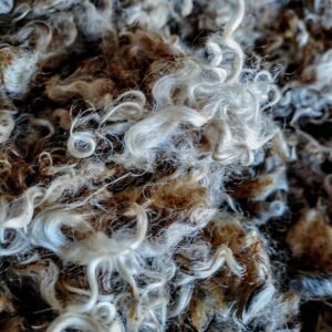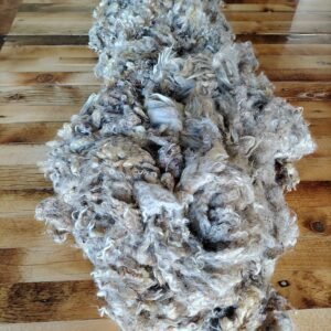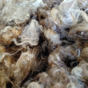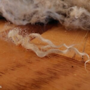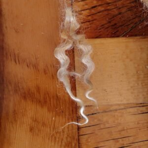 Short locks that are perfect for all your craft needs. Will wash up pure white and takes dye exceptionally well as it has little to no Kemp. This fleece is in the raw so it does contain some vm.