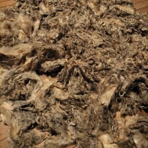 Beautiful fleece ready to be washed up and made into something amazing. This is a raw fleece so it does contain very minimal vm as all raw fleeces contain some vm. Skirted well. These locks will wash up pure white and take dye extremely well, as this wool contains little to no Kemp.