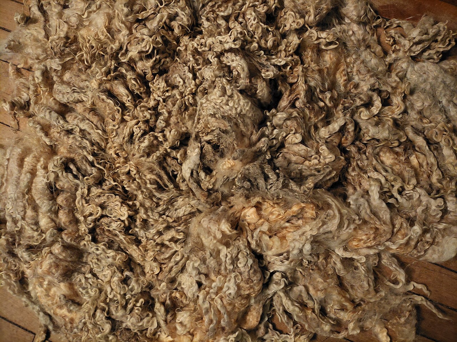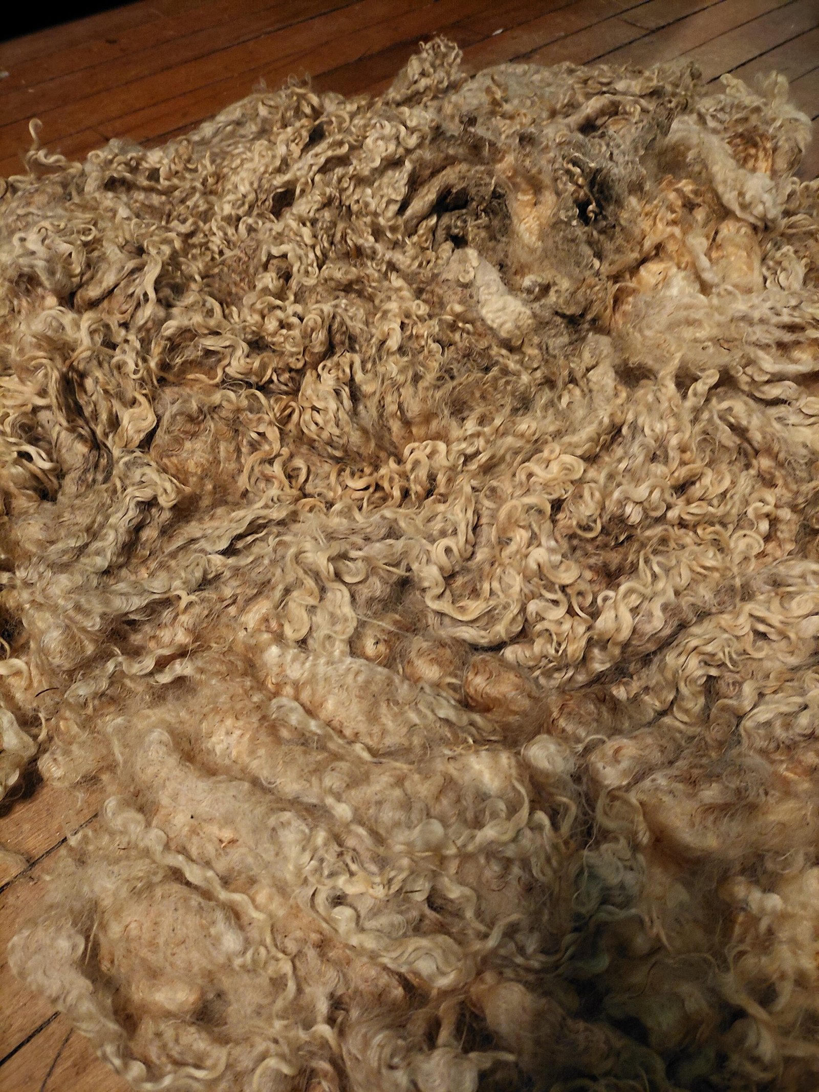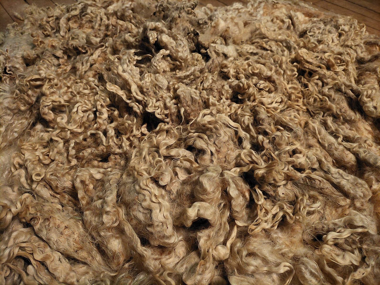 Beautiful fleece ready to be washed up and made into something amazing. This is a raw fleece so it does contain minimal vm as all raw fleeces contain some vm. These locks will wash up pure white and take dye extremely well, as this wool contains little to no Kemp.