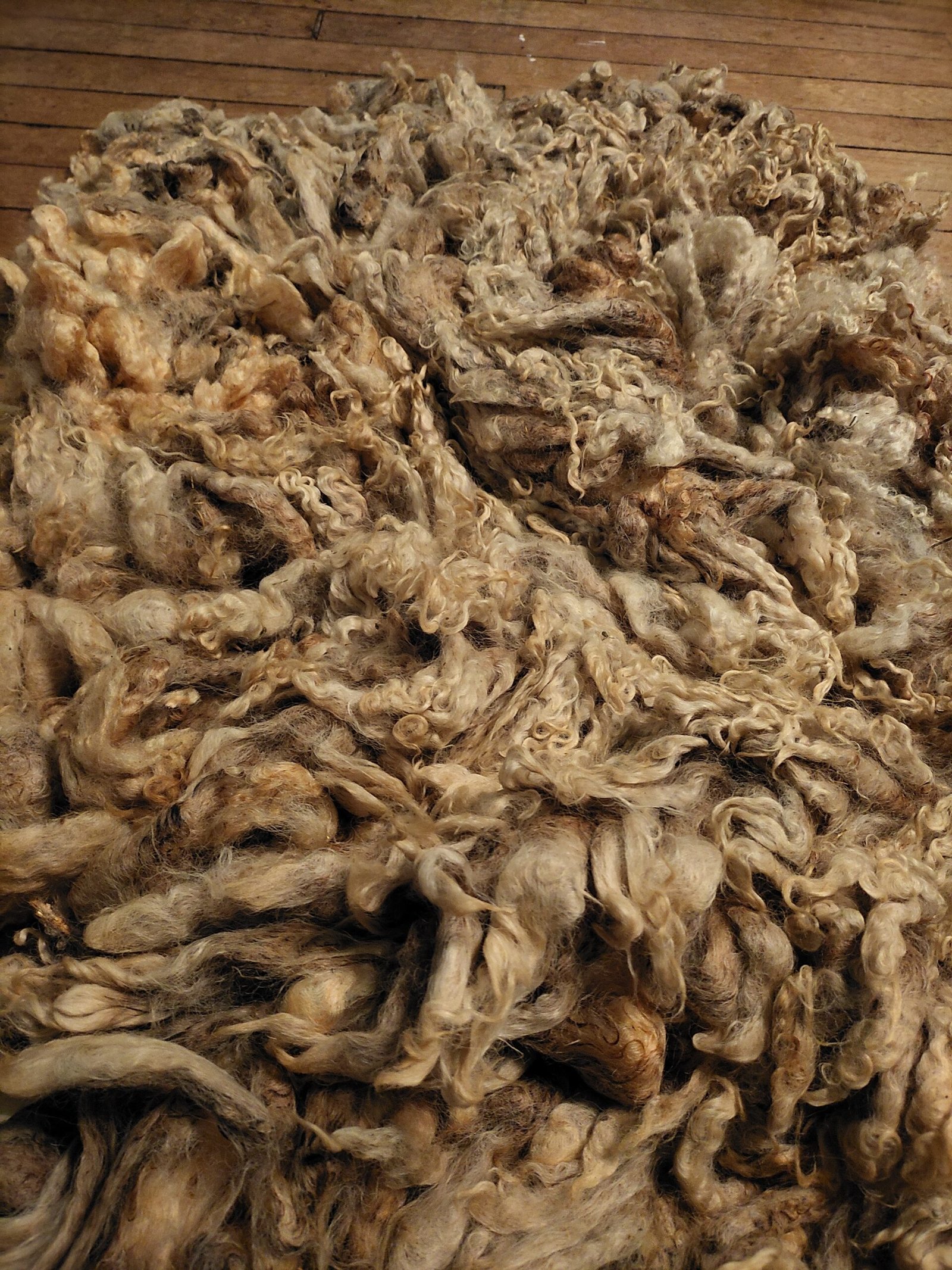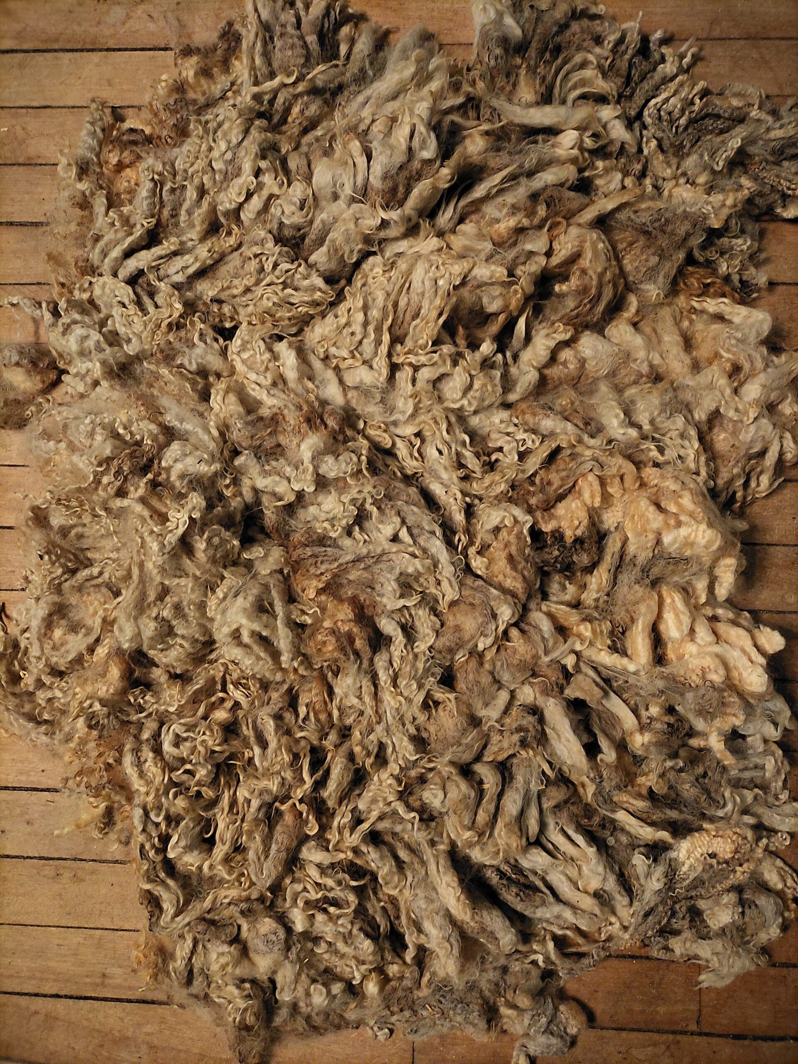 Beautiful fleece ready to be washed up and made into something amazing. This is a raw fleece so it does contain minimal vm as all raw fleeces contain some vm. These locks will wash up pure white and take dye extremely well, as this wool contains little to no Kemp.
