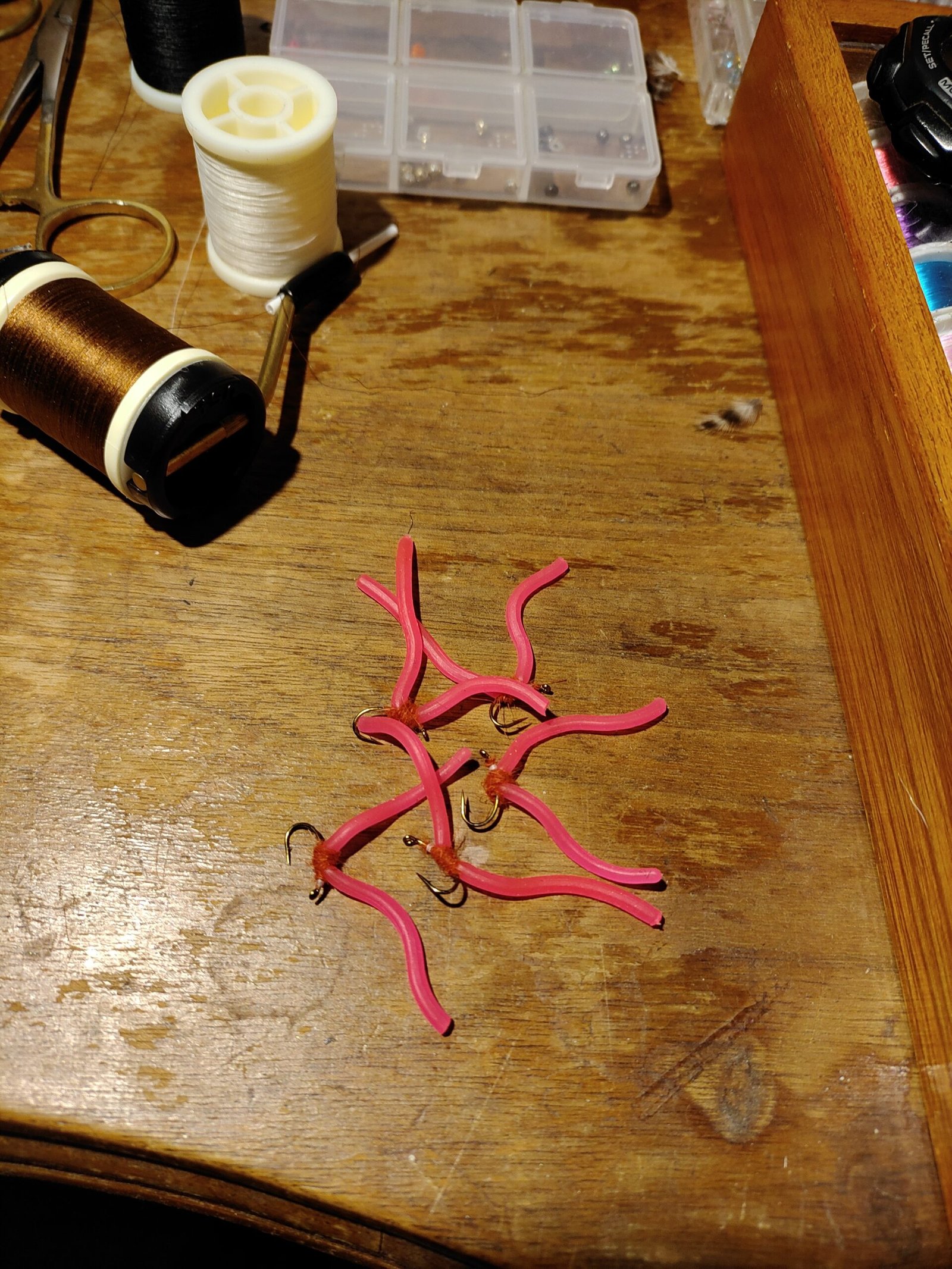 5 Hand Tied Squirmy Wormy Flies.